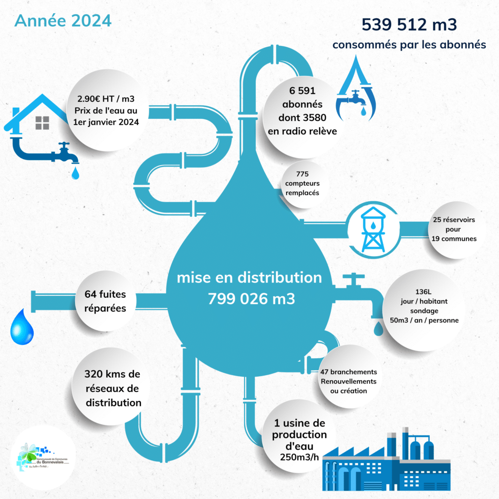 La gestion de l’eau est une compétence essentielle de la  Communauté de Communes du Bonnevalais, qui a pour mission de garantir un accès à une eau potable de qualité tout en préservant les ressources en eau du territoire. Cette compétence est cruciale pour le bien-être des habitants et la protection de l’environnement.