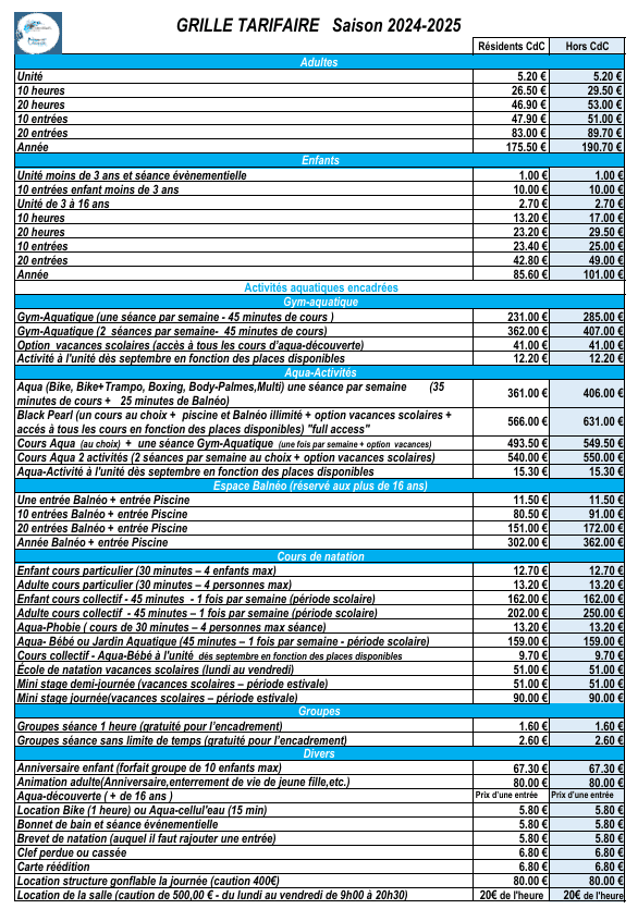 - Entrée balnéo + piscine : 11,50 €