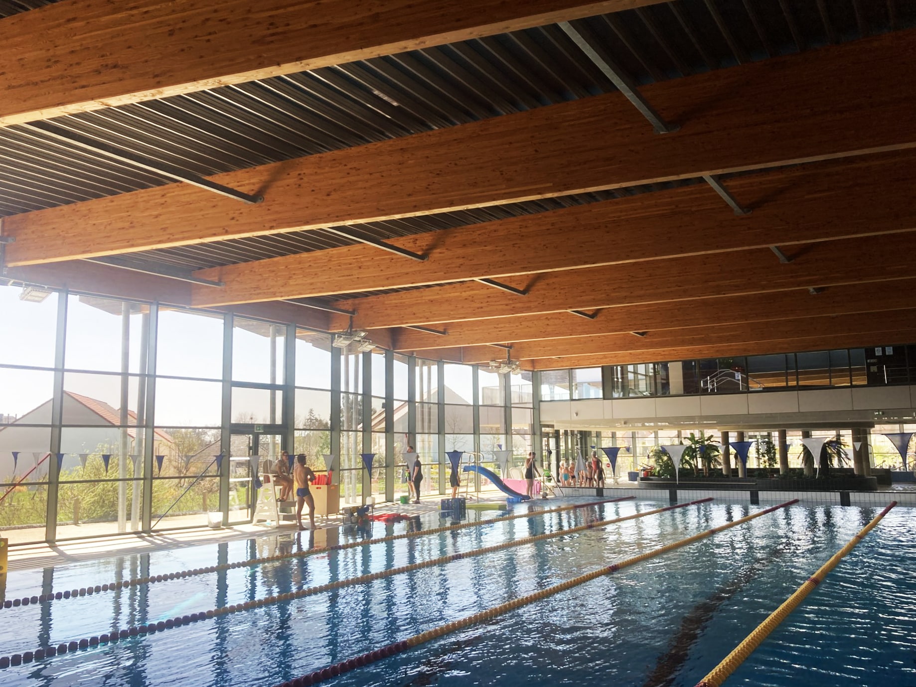 - Bassin couloir : Cinq lignes dédiées pour la natation et l’entraînement.